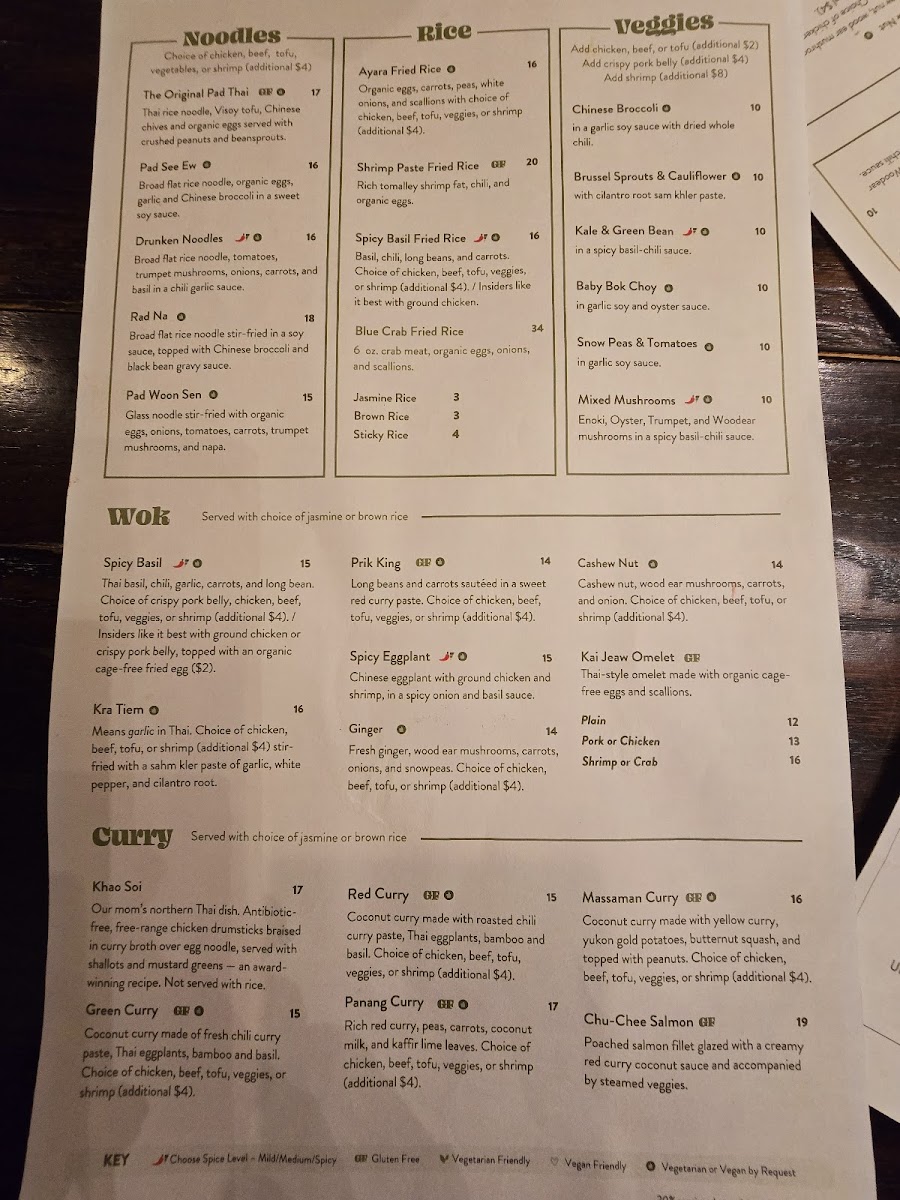 On the menu, you'll find beloved classics such as Pad Thai, which has garnered rave reviews for its generous portions and rich flavor. The Spicy Basil Fried Rice and Spicy Eggplant showcase the bold spices synonymous with Thai cuisine, sure to please both spicy enthusiasts and those looking for a milder option.